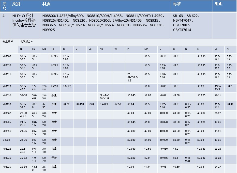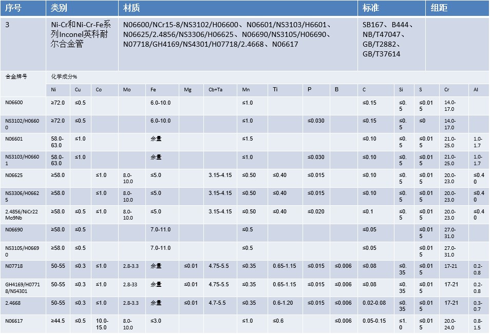 Ni-Cr和Ni-Cr-Fe系列Inconel英科耐尔合金管